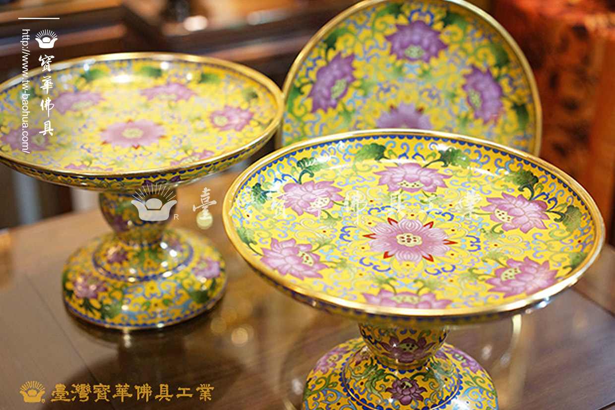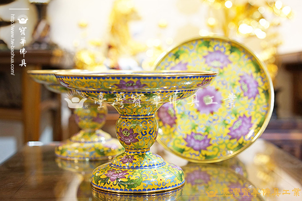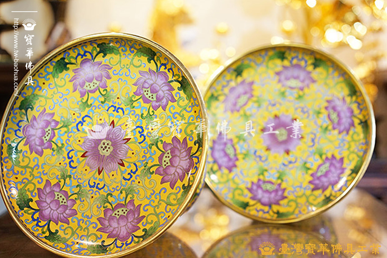 其胎體為紫銅手工打造而成,以紫銅線(掐絲)勾勒出圖案,再填入礦物粉末燒結而成琺瑯,其過程得反覆數次填料燒結,直至琺瑯滿滿覆蓋表面後,方可研磨打亮。