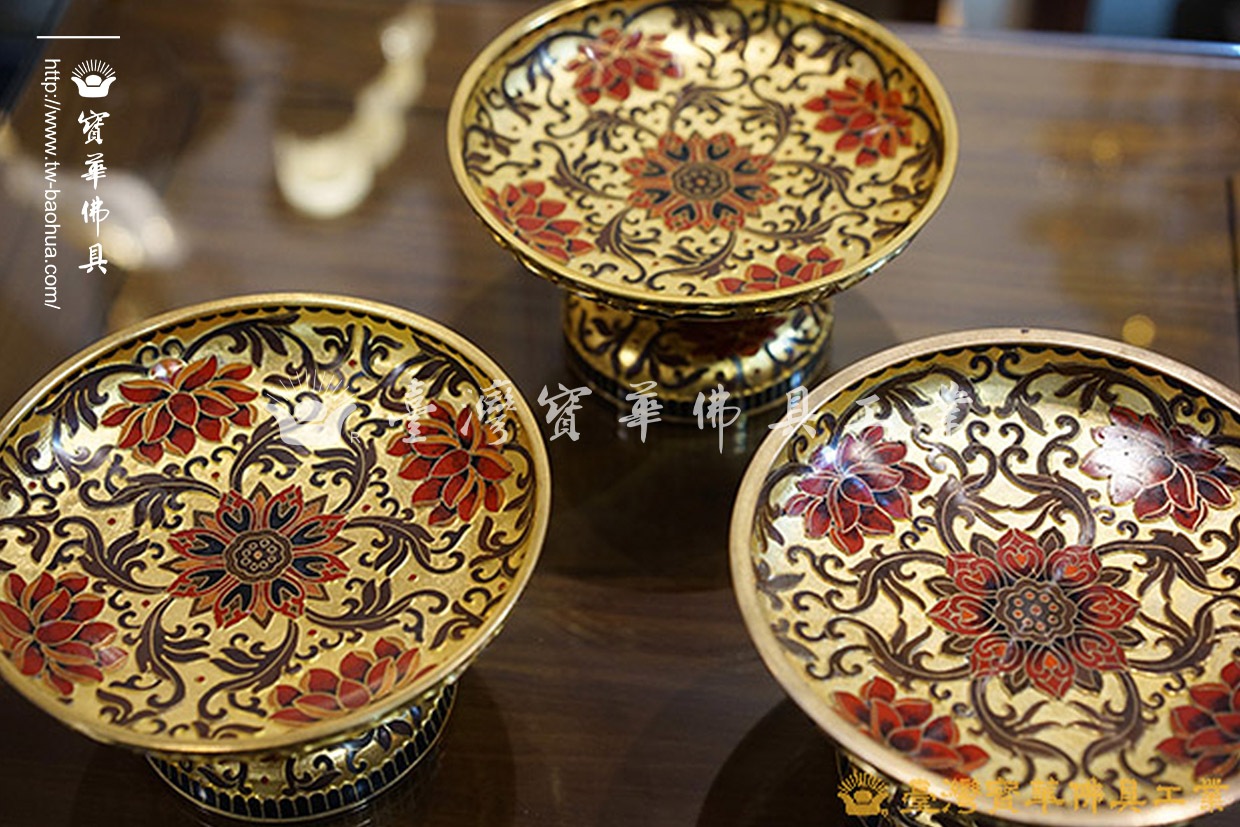 其胎體為紫銅手工打造而成,以紫銅線(掐絲)勾勒出圖案,再填入礦物粉末燒結而成琺瑯,其過程得反覆數次填料燒結,直至琺瑯滿滿覆蓋表面後,方可研磨打亮。
