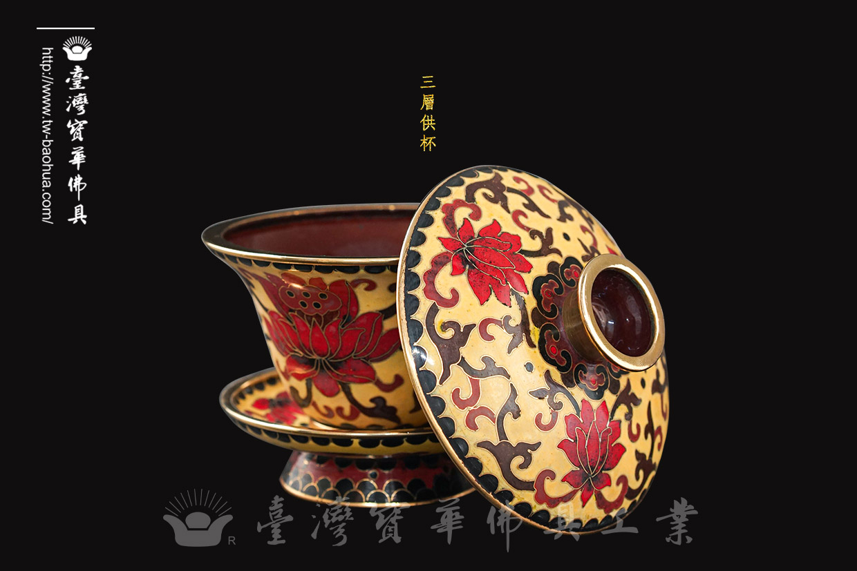 其胎體為紫銅手工打造而成,以紫銅線(掐絲)勾勒出圖案,再填入礦物粉末燒結而成琺瑯,其過程得反覆數次填料燒結,直至琺瑯滿滿覆蓋表面後,方可研磨打亮。