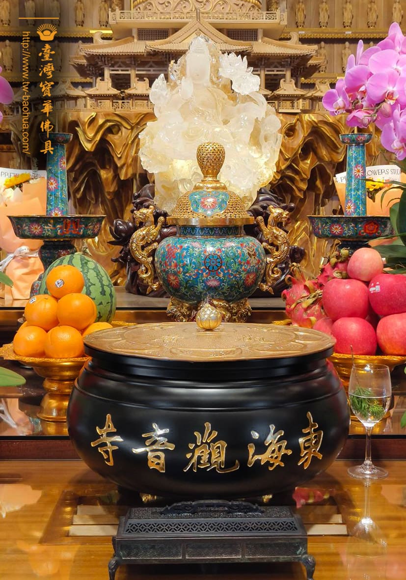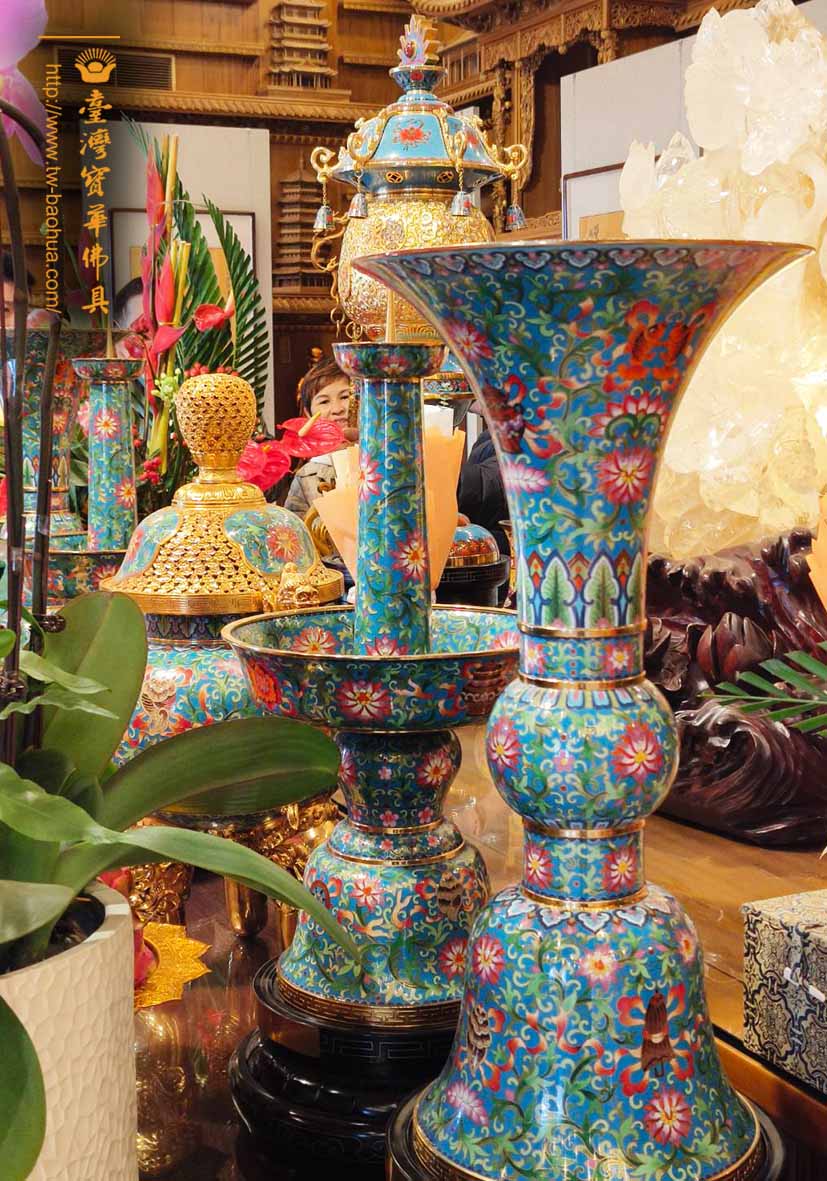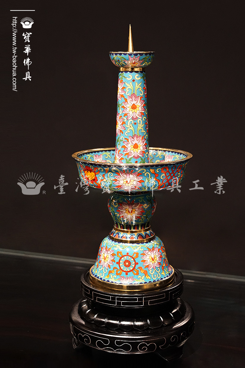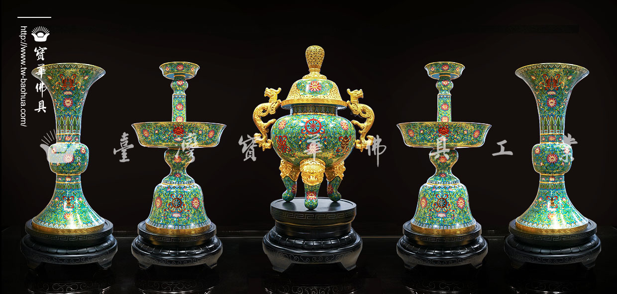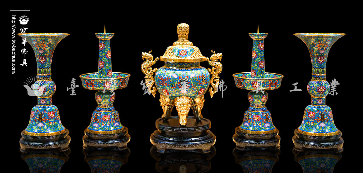 其胎體為紫銅手工打造而成,以紫銅線(掐絲)勾勒出圖案,再填入礦物粉末燒結而成琺瑯,其過程得反覆數次填料燒結,直至琺瑯滿滿覆蓋表面後,方可研磨打亮。