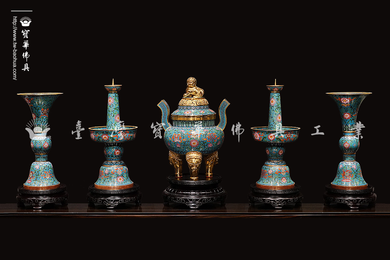 景泰藍佛前五供-靛綠