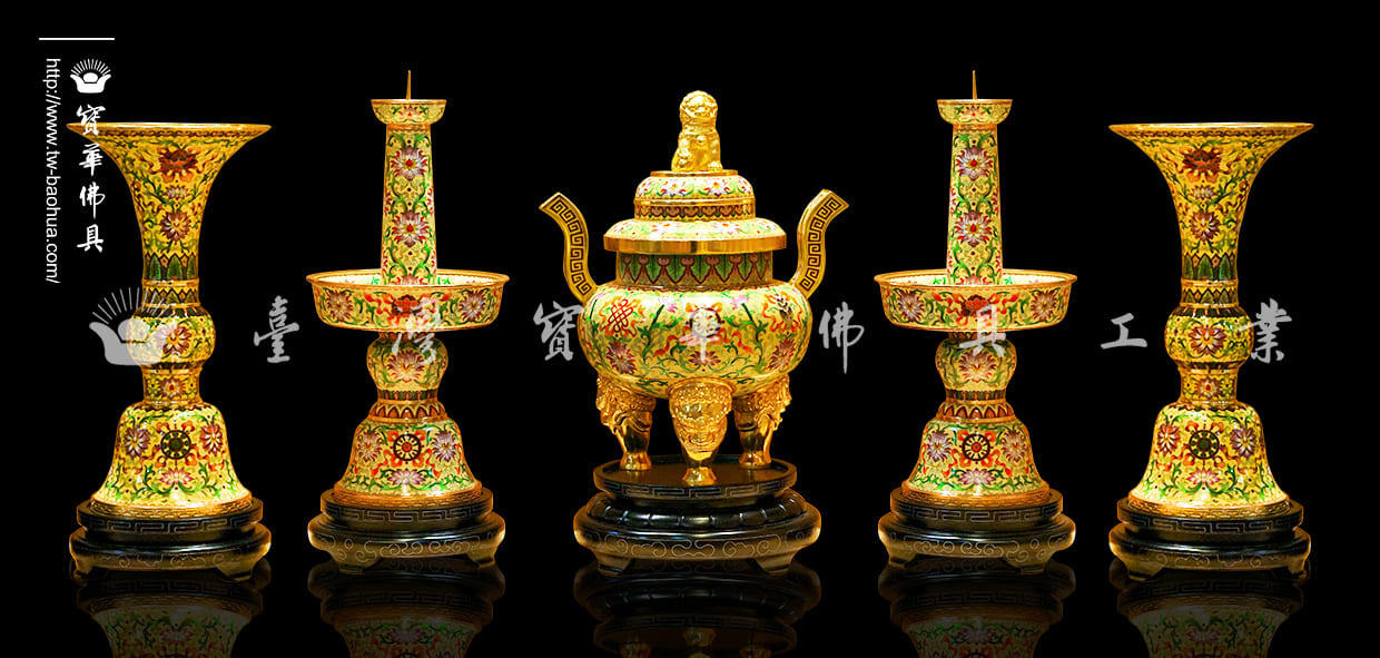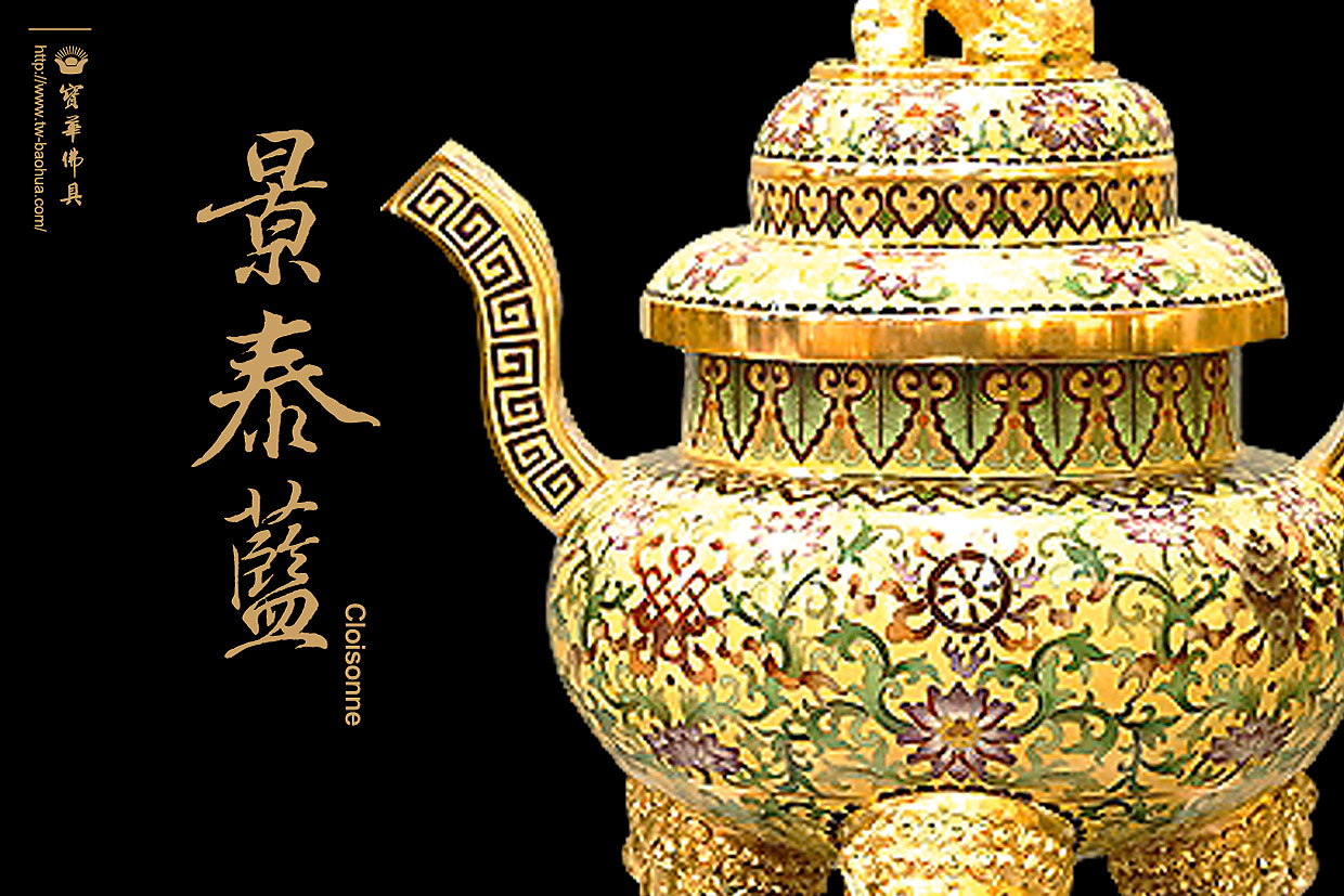 其胎體為紫銅手工打造而成,以紫銅線(掐絲)勾勒出圖案,再填入礦物粉末燒結而成琺瑯,其過程得反覆數次填料燒結,直至琺瑯滿滿覆蓋表面後,方可研磨打亮。