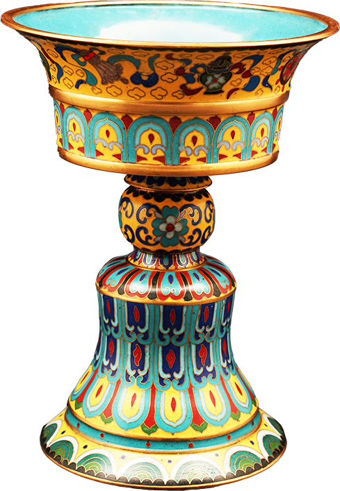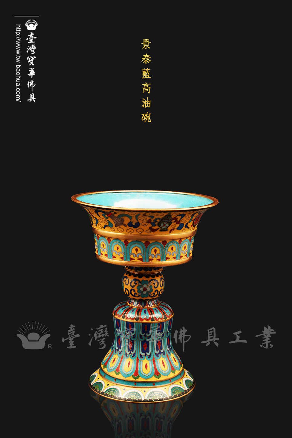 其胎體為紫銅手工打造而成,以紫銅線(掐絲)勾勒出圖案,再填入礦物粉末燒結而成琺瑯,其過程得反覆數次填料燒結,直至琺瑯滿滿覆蓋表面後,方可研磨打亮。