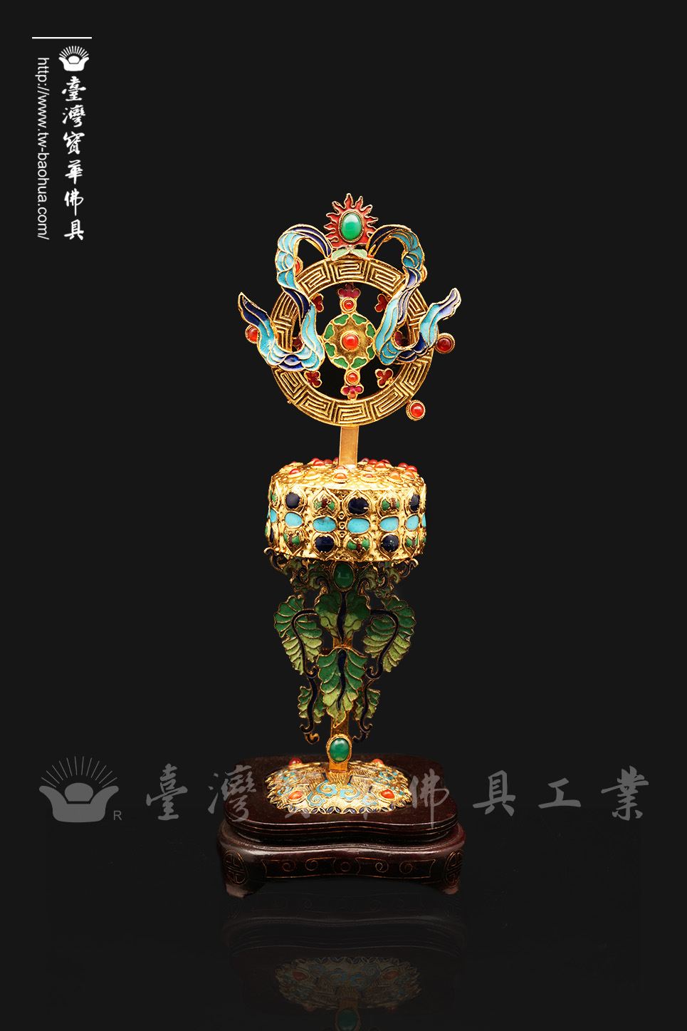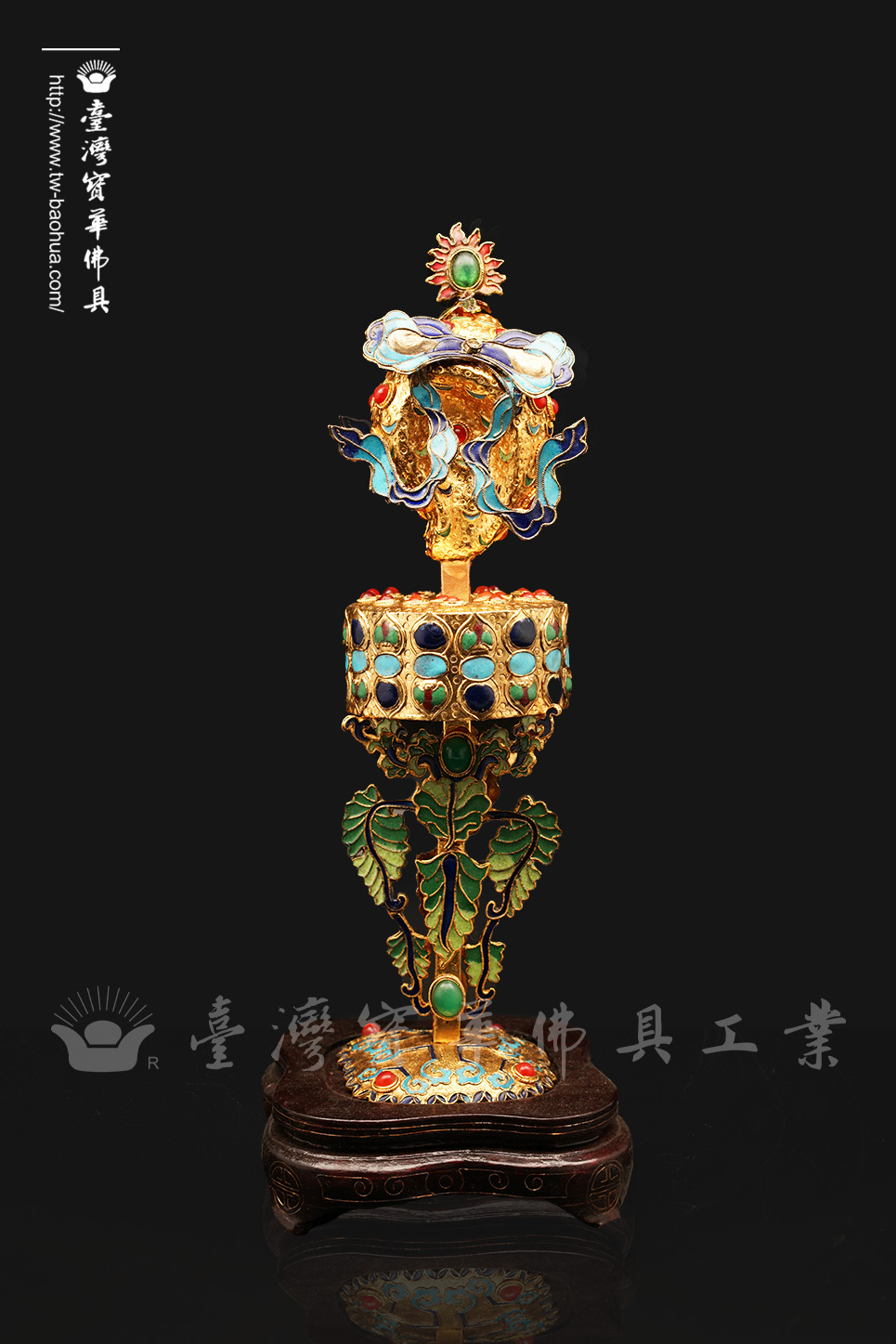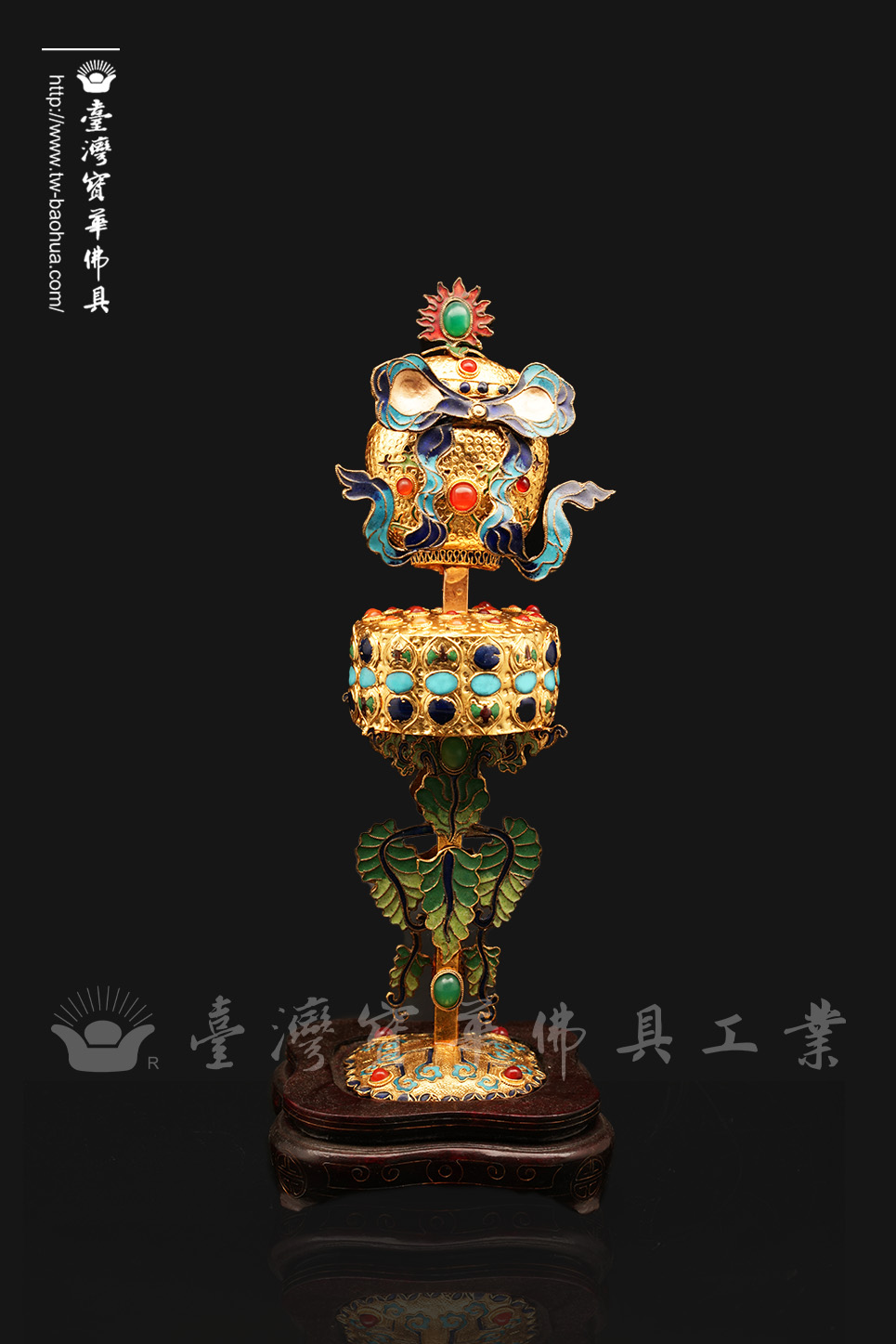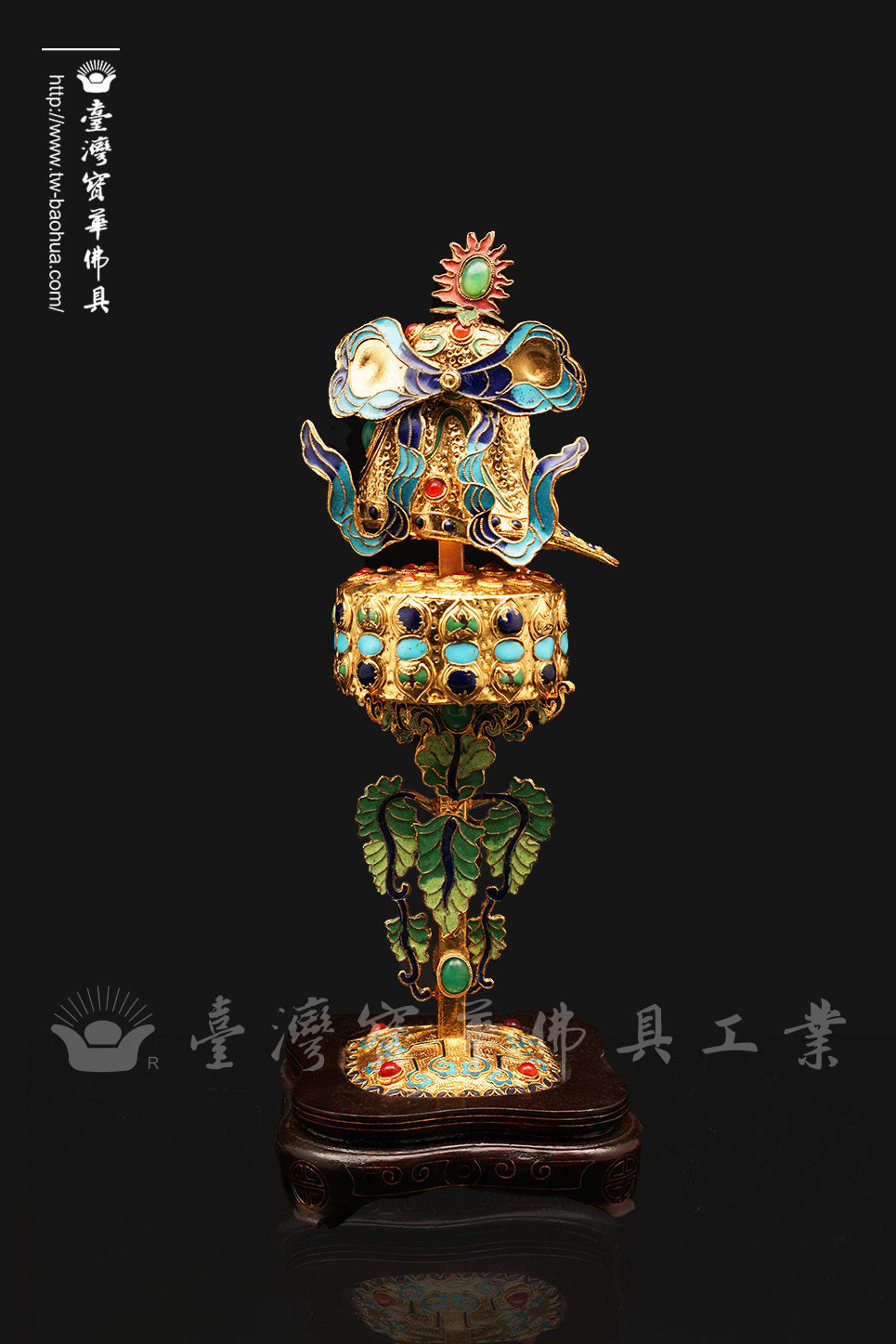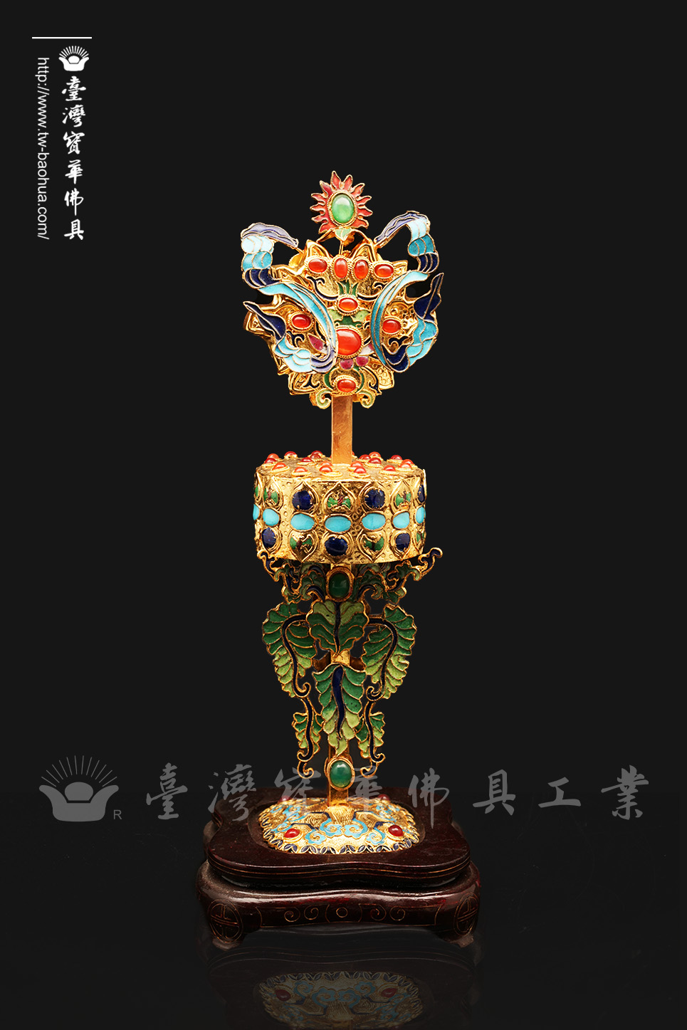 其胎體為紫銅手工打造而成,以紫銅線(掐絲)勾勒出圖案,再填入礦物粉末燒結而成琺瑯,其過程得反覆數次填料燒結,直至琺瑯滿滿覆蓋表面後,方可研磨打亮。