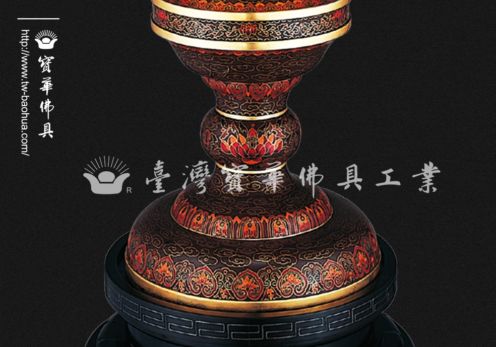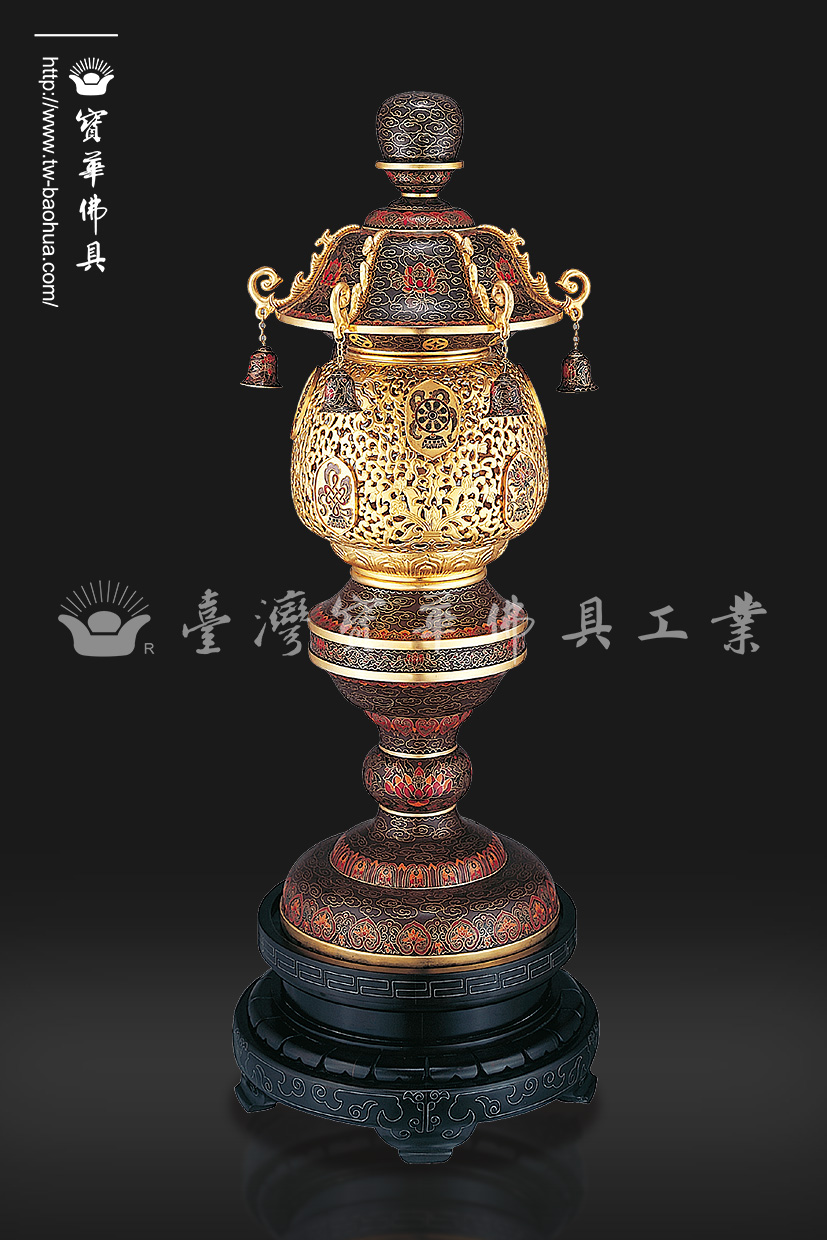其胎體為紫銅手工打造而成,以紫銅線(掐絲)勾勒出圖案,再填入礦物粉末燒結而成琺瑯,其過程得反覆數次填料燒結,直至琺瑯滿滿覆蓋表面後,方可研磨打亮。