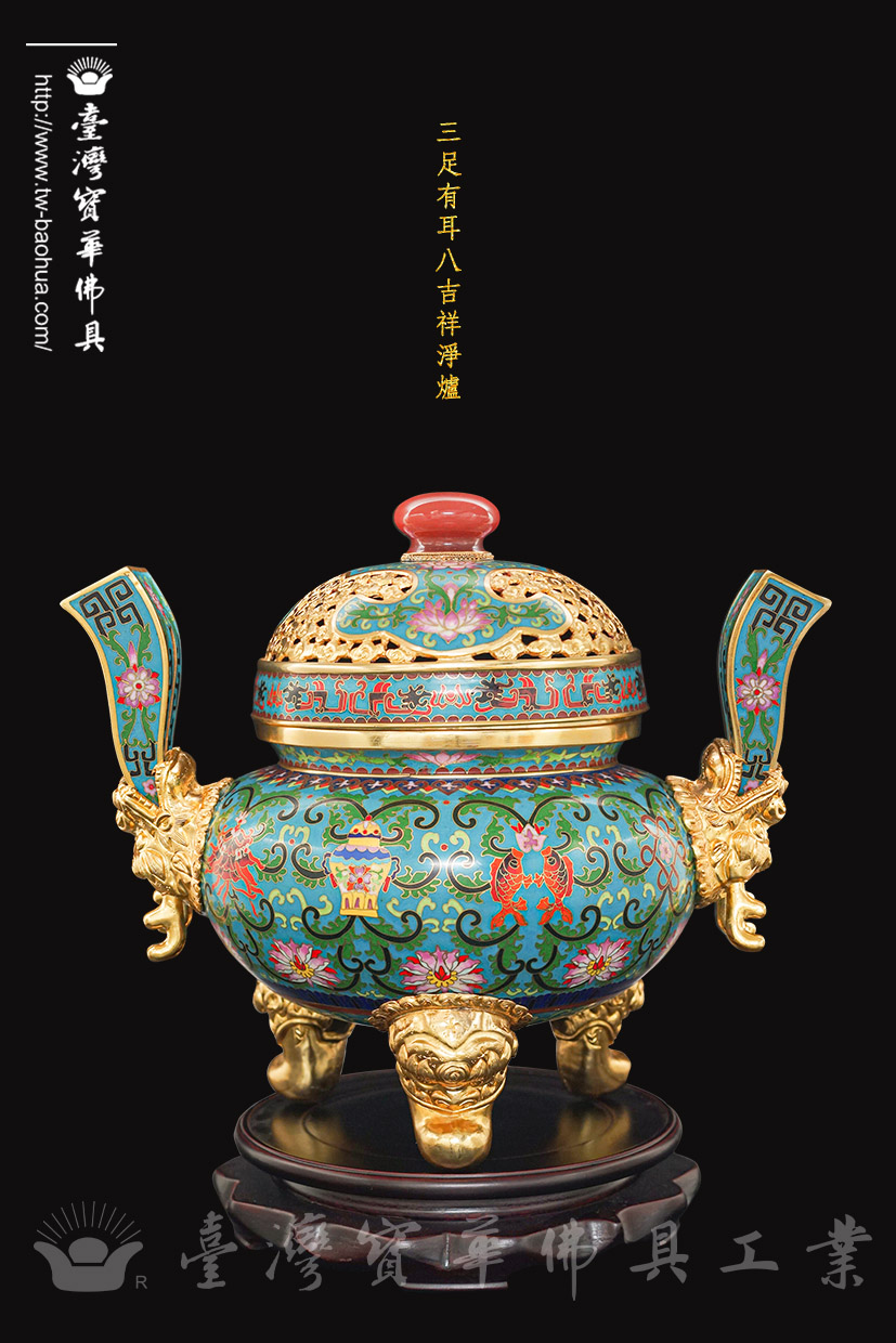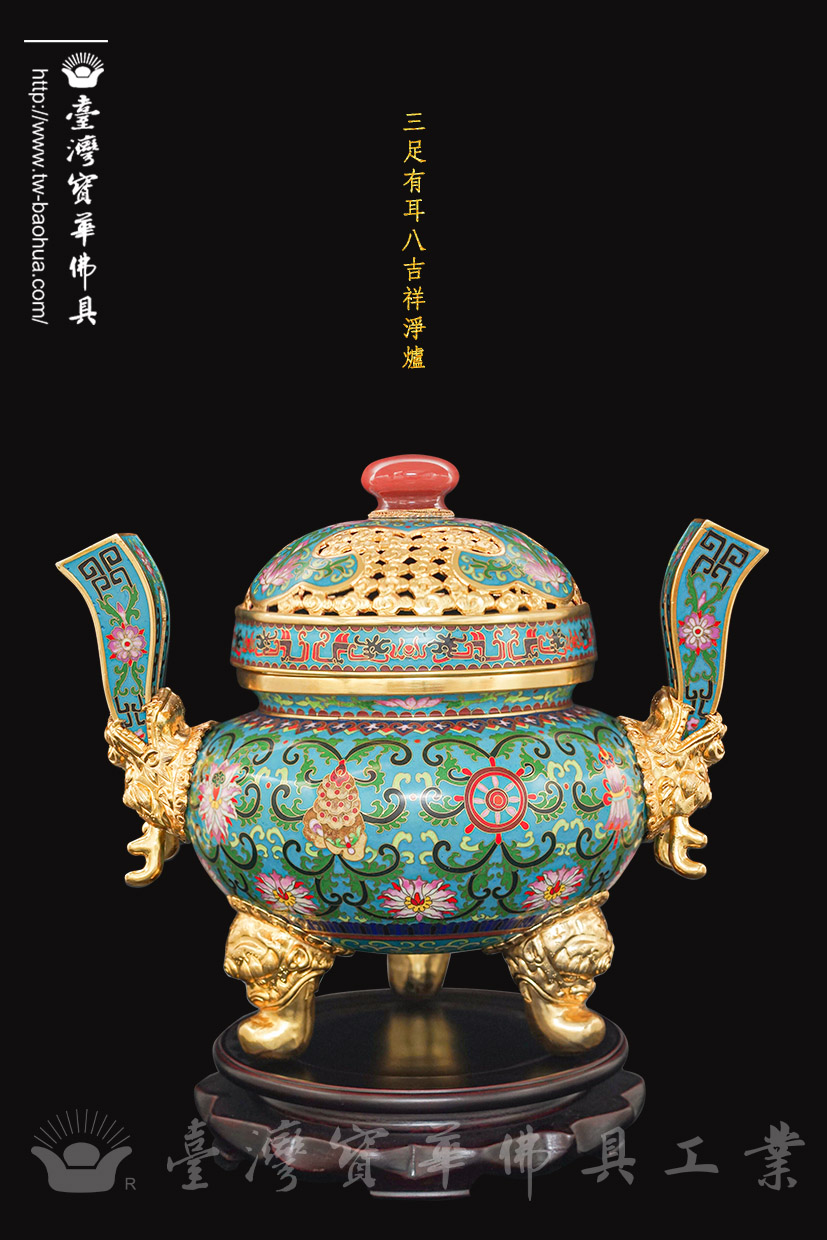 景泰藍三足有耳八吉祥淨爐
