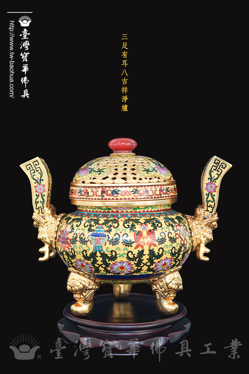 景泰藍三足有耳八吉祥淨爐 -大黃