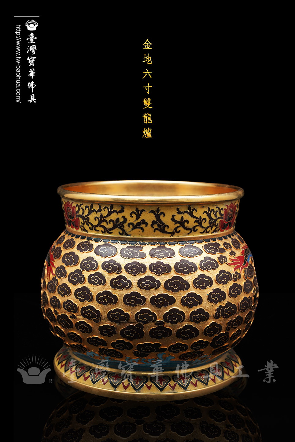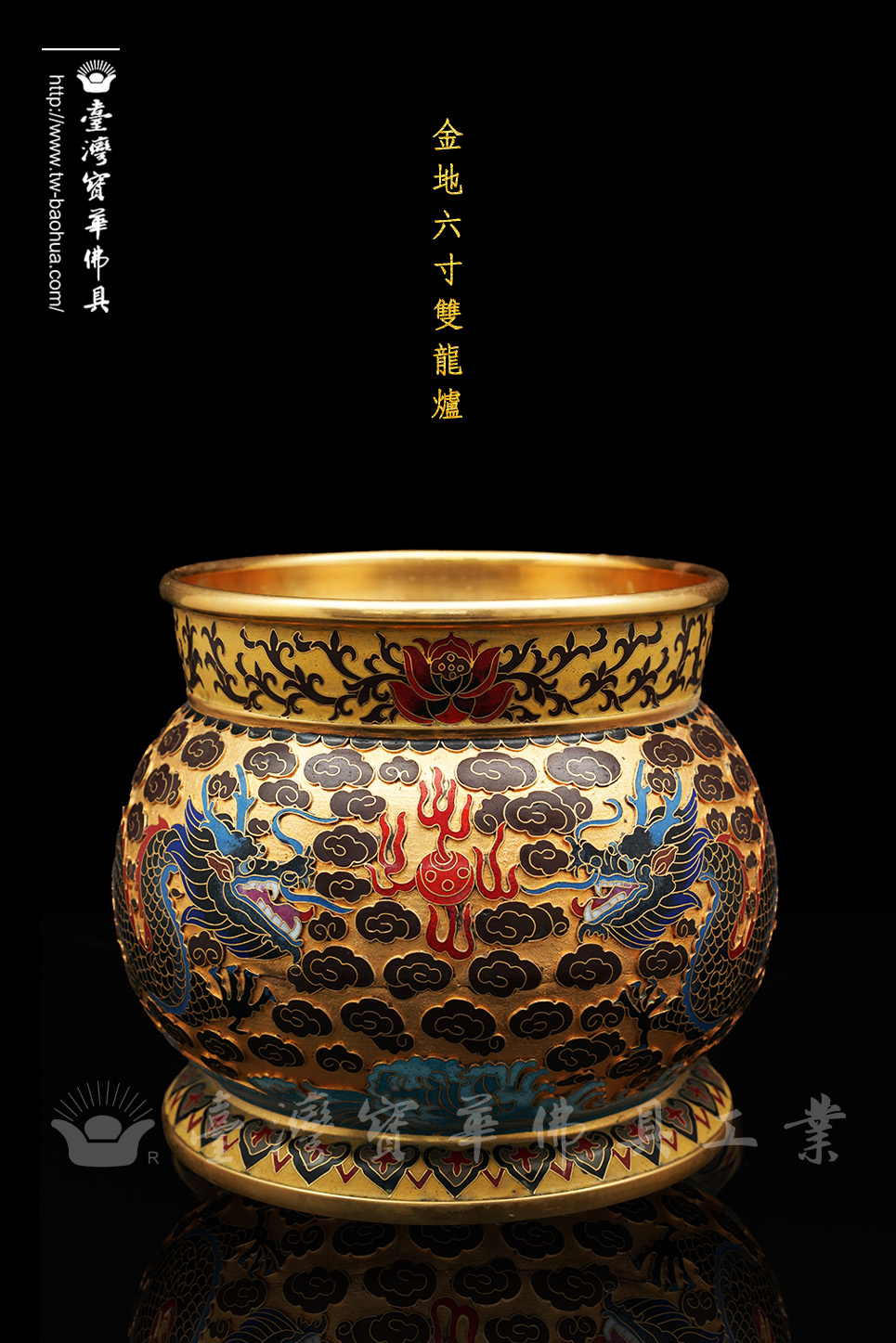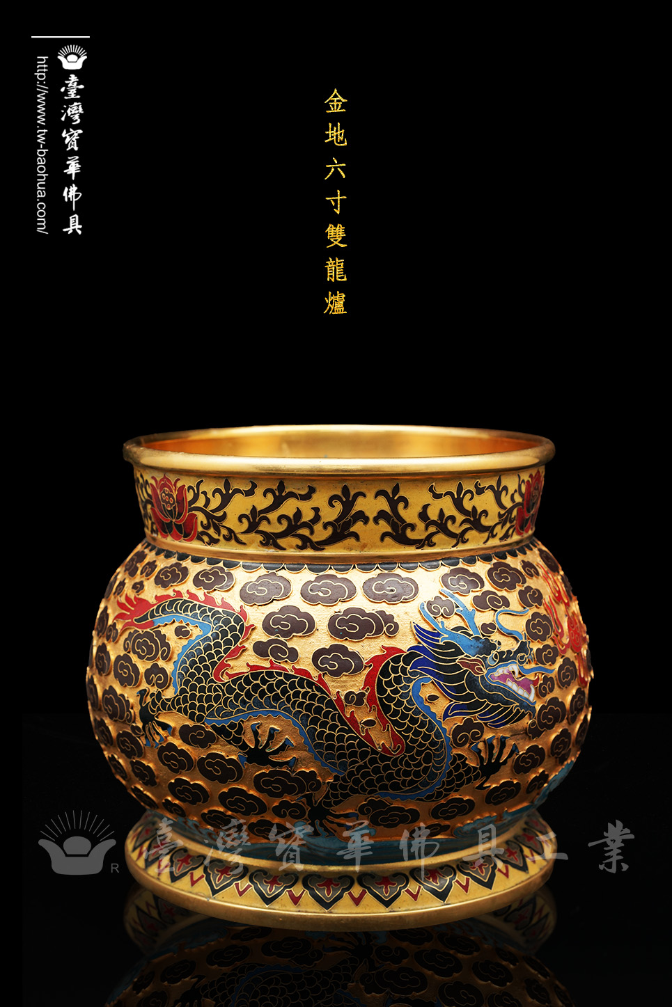景泰藍金地6寸雙龍斗爐
