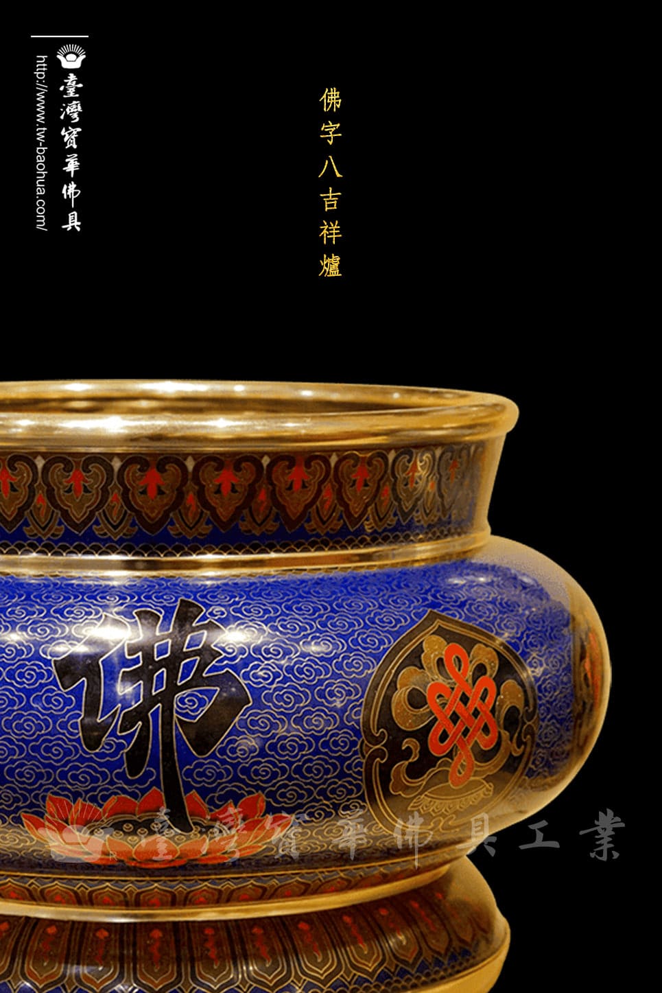 景泰藍8寸8佛字八吉祥爐-寶藍