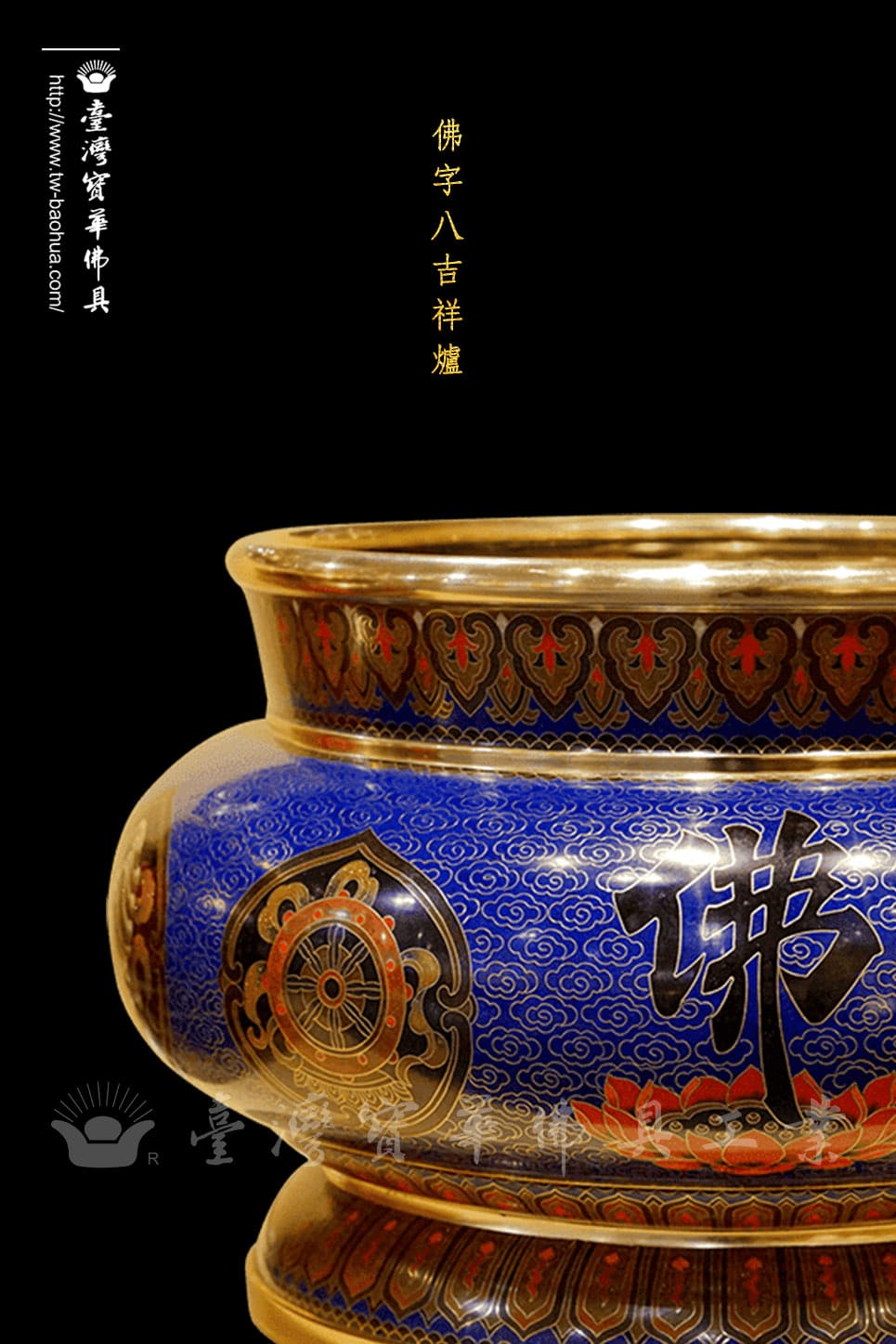 景泰藍佛字八吉祥爐-寶藍