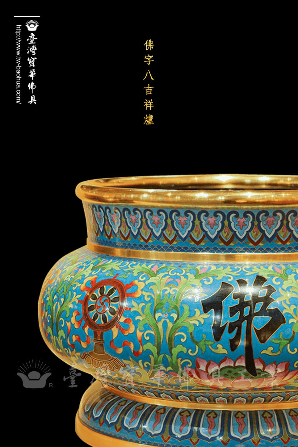 景泰藍佛字八吉祥爐-錠綠