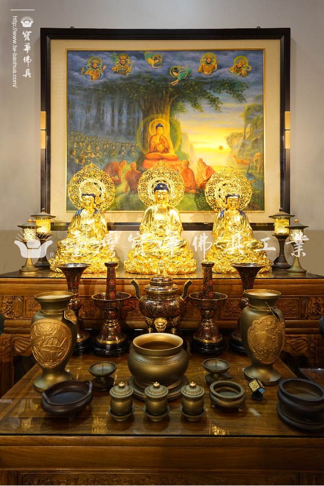 銅胎仿古泥金西方三聖 手染系列佛具