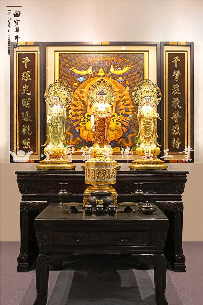 油畫千手千眼觀音 紅檀佛桌