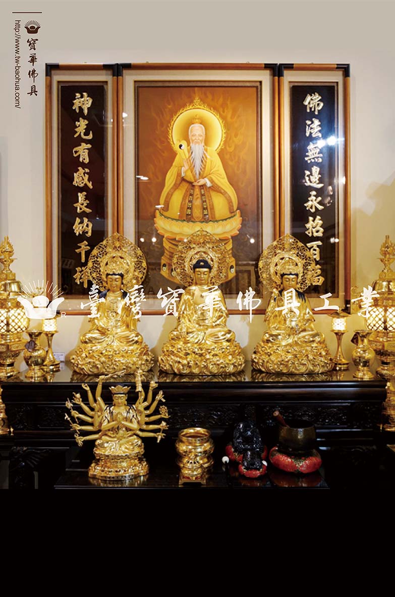 油畫太上道祖 銅包真金西方三聖