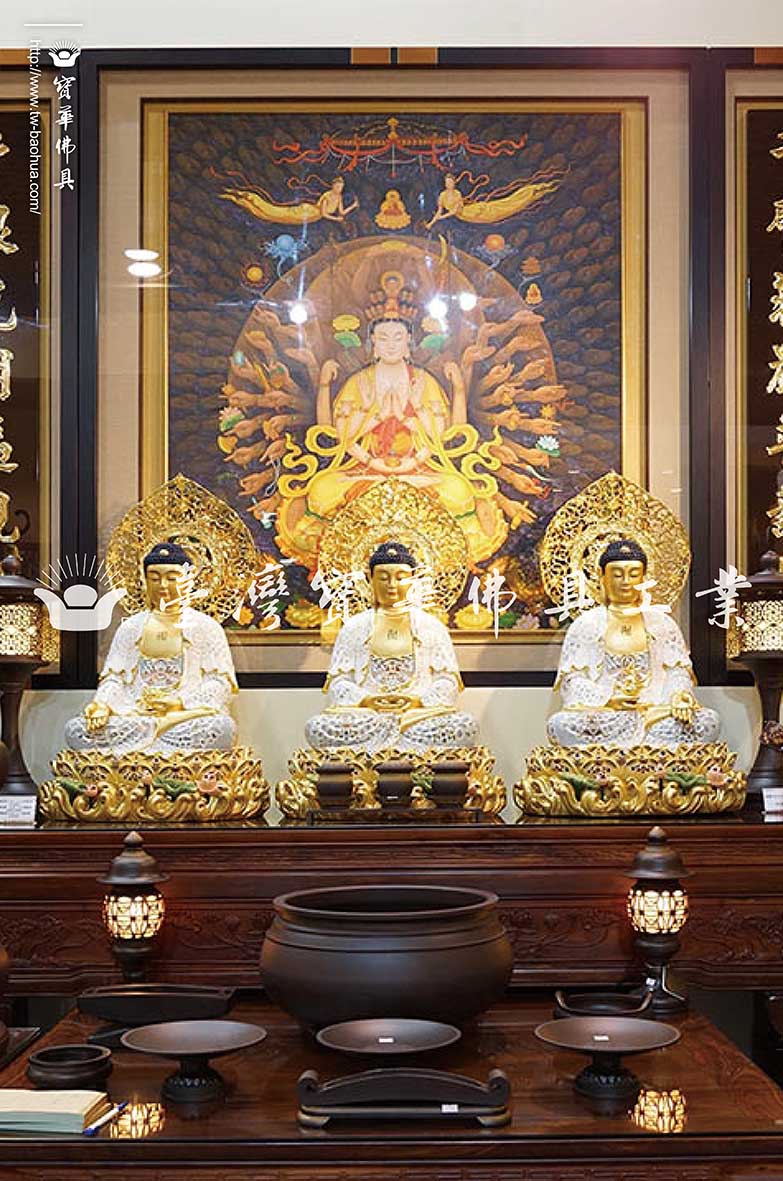 銅胎淡藍白三如來 礦彩系列佛具